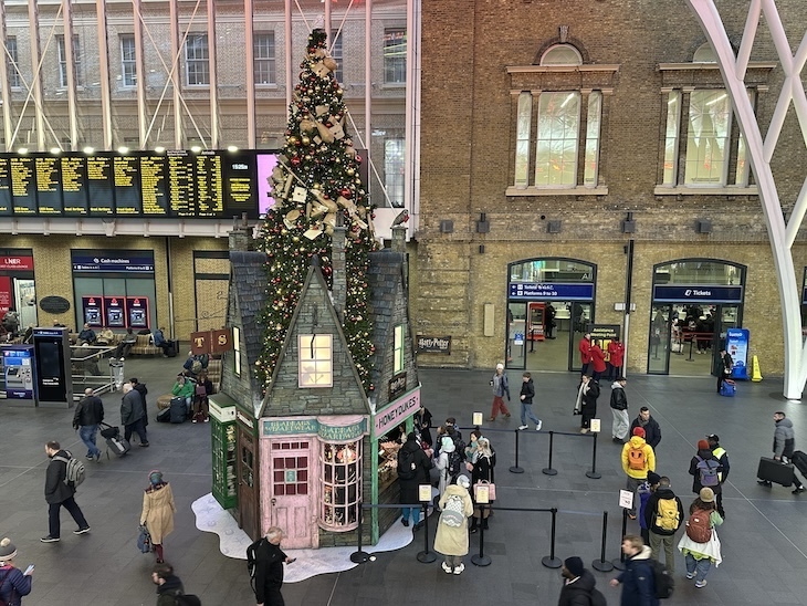 Decorațiunile de Crăciun londoneze te trimit în lumea poveștilor. De la vitrinele Selfridges realizate în colaborare cu Disney la străzile luminate, chiar și călătoriile cu metroul sunt prilej de întâlnire cu personaje legendare. Serviciul de transport londonez alege anual o tematică pentru decorarea unui hub. Bradul cu tematica Harry Potter instalat în stația King’s Cross cu peste 800 de globuri și o bufniță în vârf poate fi admirat până pe 5 ianuarie. La baza instalației se regăsesc reproducerile magazinelor Hogsmeade și Diagon Alley, cu vitrine detaliate, inclusiv magazinul de baghete Ollivander, librăria Tomes and Scrolls, Gladrags Wizardwear și Owl Post. În apropierea decorațiunii de aproape 10 metri există un chioșc Honeydukes dedicat cu dulciurile preferate ale vrăjitorilor.