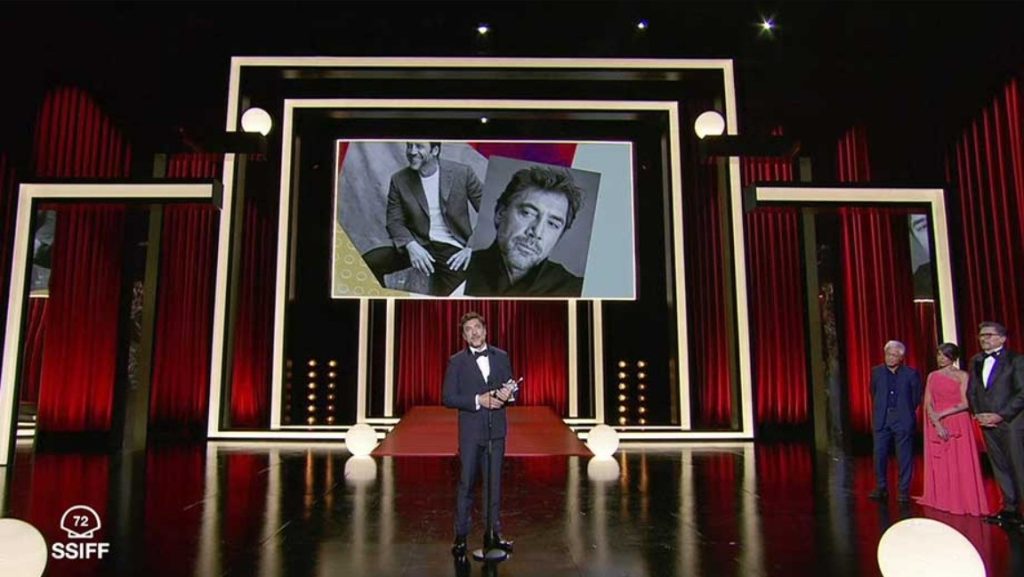 Recompensat, între altele, cu un Oscar pentru rolul secundar din ”No Country for Old Men” al fraților Joel și Ethan Coen, cu premii pentru interpretare la Cannes, pentru ”Biutiful”, și din partea European Film Academy, pentru ”Mar adentro”, Javier Bardem nu a putut să își ridice premiul Donostia anul trecut, din cauza grevei scenariștilor și actorilor de la Hollywood, și a revenit acum cu un discurs emoționant, în care le-a adus un omagiu și mamei, regretata actriță Pilar Bardem, și soției, Penélope Cruz.